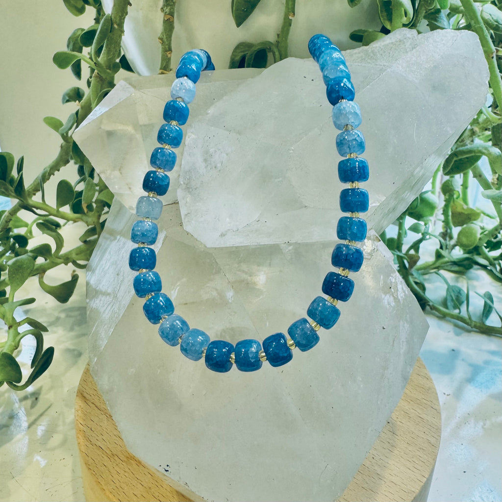 Cosmic Blue and Gold Beaded Necklace