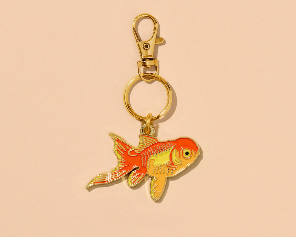 A fun lil' keychain featuring a bag of goldfish, just like you would win at the state fair! Updated artwork with even cuter fishies.