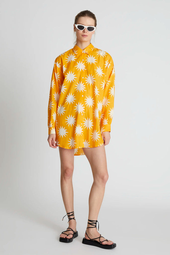 Oversized shirt with a Big Sun print. Featuring a shirt collar and long sleeves with buttoned cuffs. Front button closure.