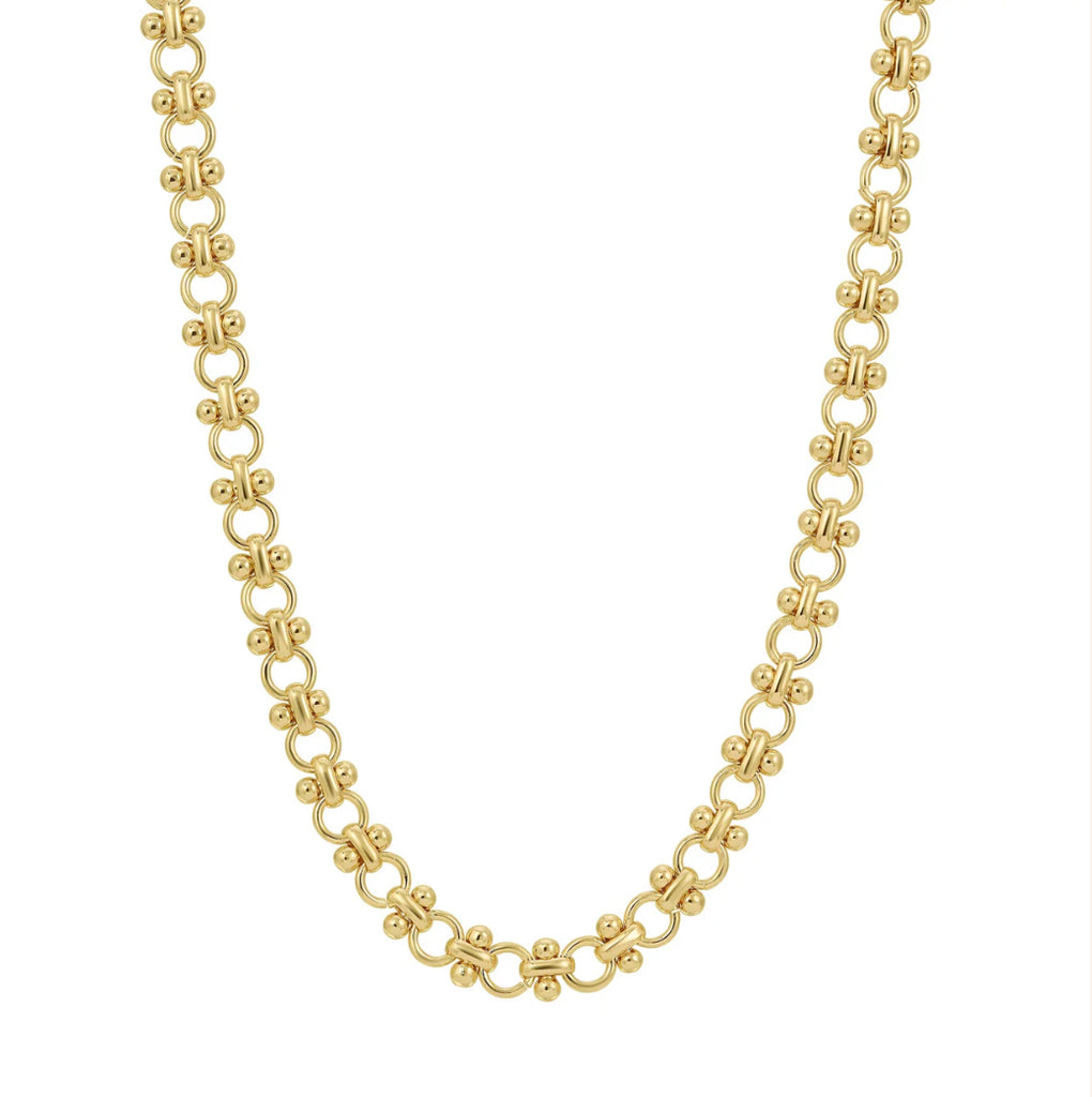 Your favorite bracelet's cooler older sister. Intricate geometric links create a pattern that's detailed without being fussy. It's feminine but not precious, vintage-inspired but thoroughly modern. The kind of necklace that looks like you inherited it from someone with excellent taste.